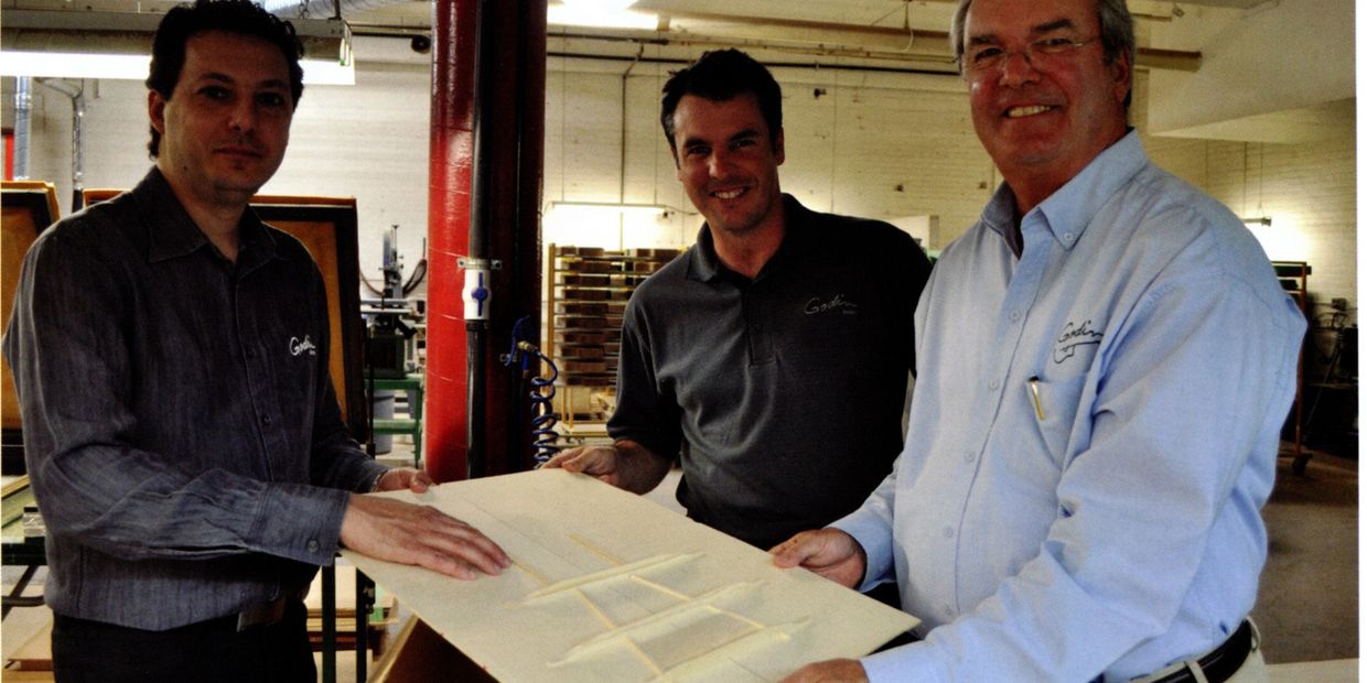 We started building guitars over twenty years ago in a village in Quebec Canada called La Patrie. The man that started it all is Robert Godin. Robert still owns the company and he continues to design the vast majority of our guitars. We are a Canadian company with our head office located in Montreal and we build our guitars in several different locations, five in Quebec and one in New Hampshire. For those of you keeping score, that adds up to six factories spread over about 1000 kilometers. So why not just have one giant factory? Although there are some obvious inconveniences associated with spreading ourselves out this much, the up-side is that these smaller operations promote a more intimate working environment which gets everybody more involved and this is reflected in the instruments themselves. Godin guitar are assembled in our Richmond, Quebec and Berlin, New Hampshire factories. The necks and bodies are all made in our original located in La Patrie, Quebec. We are also known for our other guitar brands which include our new electric line known as Richmond Guitars, as well as our acoustic brands which include: Seagull, Simon & Patrick, Norman, LaPatrie and Art & Lutherie. From the beginning the company has been more or less divided between our acoustic and electric side. The electric side of our business was originally that of a parts supplier to other guitar companies. We built their necks and bodies. You might be amazed to find out how many different guitar brands are all being produced in the same handful of factories. We're not telling you this because we want to divulge somebody's secrets but simply to let you know where we're coming from. In any case, what started out as some generic replacement necks and bodies soon evolved into a major business producing finished necks and bodies for many established U.S. guitar companies. The great thing about this is the tremendous experience that we gained building all of these instruments to their various specifications. The down side is that the sub-contracting business is a pain in the neck, so to speak, but more importantly it does not include the best part of building new guitars and that is: coming up with new designs and coaxing them through the process that begins with a sketch and ends with music.